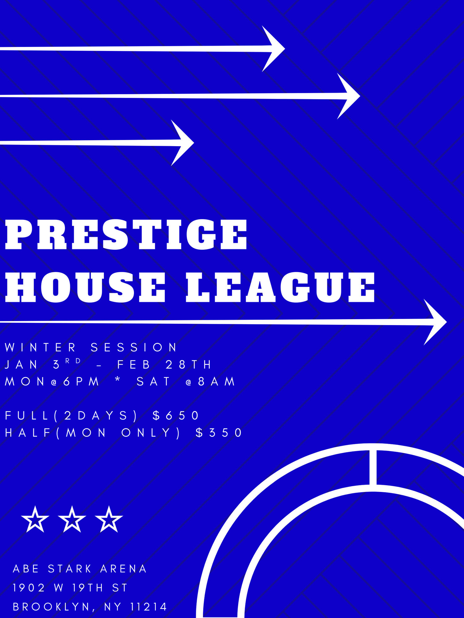 The Prestige House League meets 2 times a week on Monday evenings at 6 pm and Saturday Mornings at 8 am